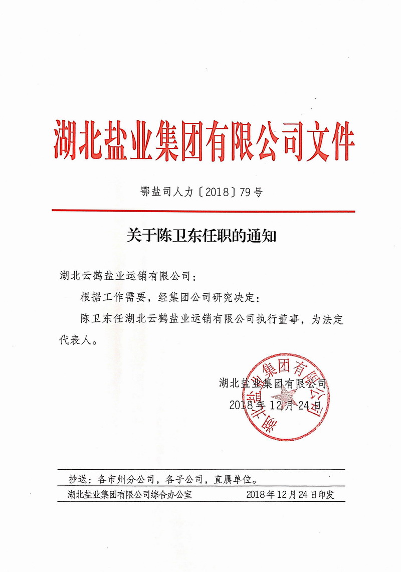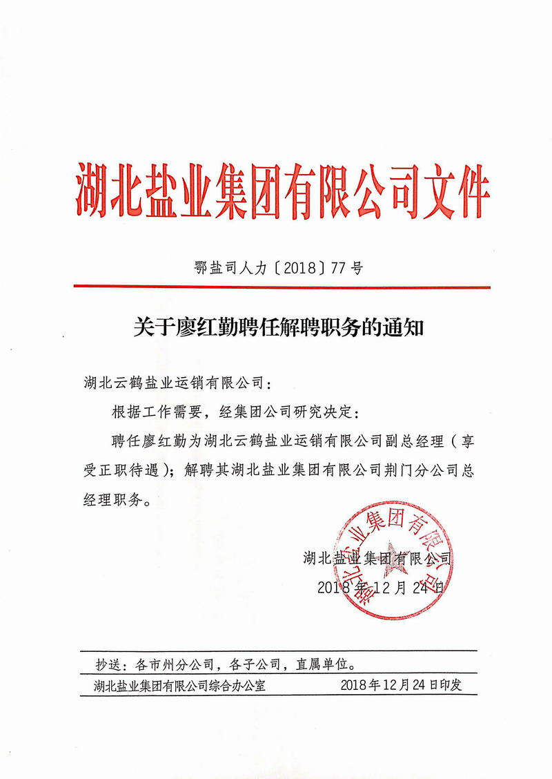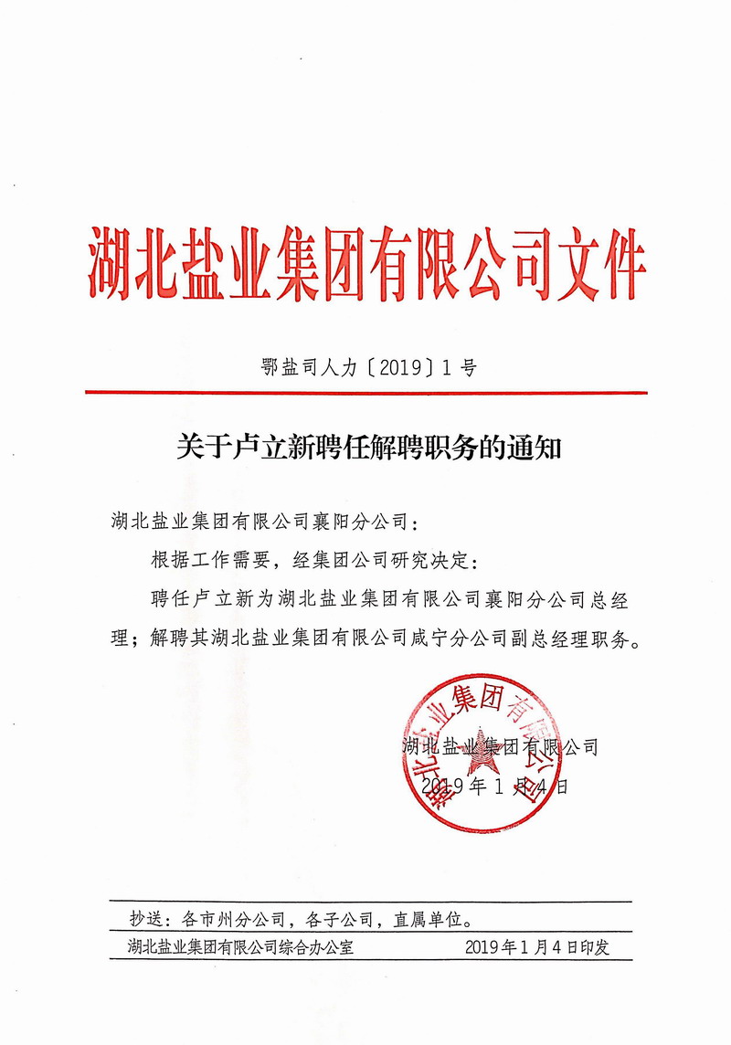 分子公司领导干部调整通知